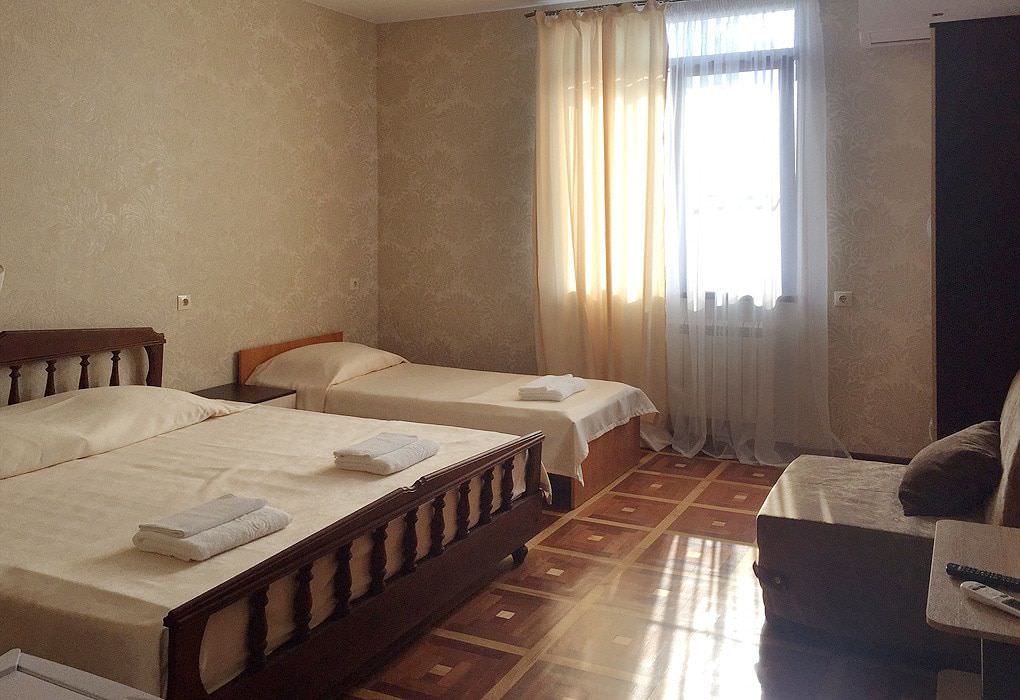 Площадь номера - 17 кв.м. 1 комната. 3 осн. места. на этаже - душ/туалет. В номере: телевизор; холодильник; кондиционер; 2-спальная кровать; 1-спальная кровать.